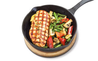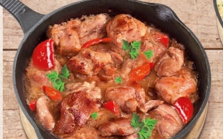 Pulpă de pui, cartofi, ciuperci, ceapă,produs pentru gătit pe bază de grăsimi vegetale hidrogenate, ciuperci champignon,, telemea de oi, roşii, mozzarella, piper negru macinat, mărar.