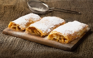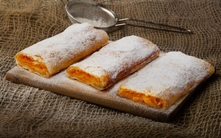 Ingrediente: aluat (făină de grâu 000, oțet de vin, sare iodată, zahăr, ulei vegetal de flaorea-soarelui), umpluturi: mere (67%), pastă de caise, zahăr tos, dovleac (46%), amidon de porumb, zahăr pudră, vișine în suc propriu (67%), zahăr tos. Alergeni: gluten. Preparatul poate conține urme de țelină.